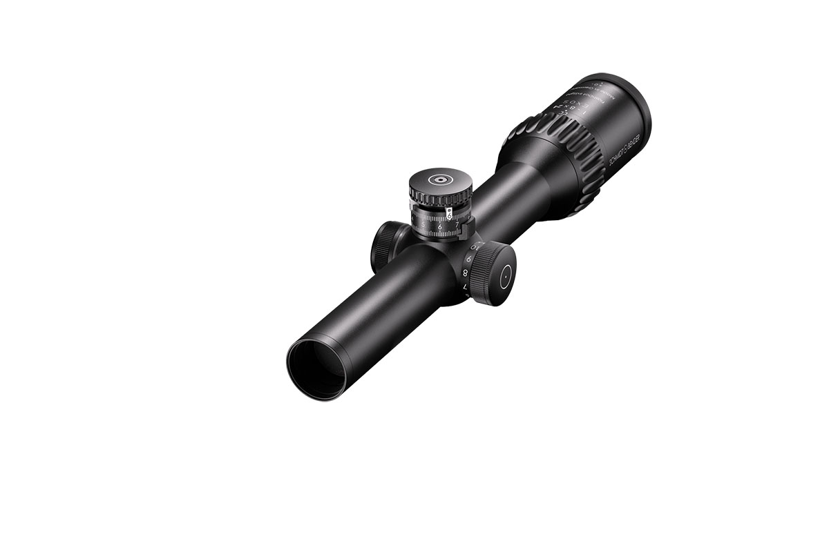 4060537066784 The 1‑8×24 Exos from Schmidt and Bender is a highly versatile, premium hunting riflescope designed for both rapid target acquisition and effective mid‑range shooting. With a magnification range of 1–8× and a 24 mm objective lens, it combines the speed of a red‑dot style sight with the precision of a full zoom optic. Key Features and Benefits True 1× magnification at the low end enables fast, intuitive shots with both eyes open and no magnification distortion. Higher magnification transitions up to 8×, offering flexibility across a wide range of distances. Wide field of view: approximately 35.3 m to 4.9 m at 100 m, providing excellent situational awareness at low magnification and fine detail at higher zoom. Generous eye relief of 90 mm for comfortable and safe mounting across different rifle platforms. High optical quality with an exit pupil of approximately 9.6–3.0 mm and light transmission over 90 %, ensuring bright, crisp imagery even in low light. Compact, durable build: 30 mm main tube, length approx. 293 mm, weight around 595 g. Adjustable illuminated reticle in certain versions for optimal visibility in varied lighting conditions. Technical Highlights Magnification: 1–8× Objective Lens Diameter: 24 mm Field of View: approx. 35.3–4.9 m @100 m Exit Pupil: approx. 9.6–3.0 mm Eye Relief: 90 mm Transmission: >90% Tube Diameter: 30 mm Length: approx. 293 mm Weight: approx. 595 g Ideal Use Case The 1‑8×24 Exos is perfect for hunters and shooters engaging fast-moving game or participating in driven hunts where immediate reaction is needed at short distance, while still providing enough zoom to clearly identify and shoot at greater ranges. Its blend of speed, clarity, and field-ready design makes it a versatile, one-scope solution.