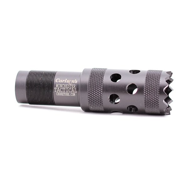 Machined steel, extended tactical choke with large diameter bore provides extra wide patterns at close range for home defense or CQB operations. Features a serrated, saw-tooth tip that holds tight against locks and hinges to prevent the muzzle from sliding during forced entry operation. Twelve, equally spaced ports redirect combustion gases to reduce felt recoil and prevent barrel damage when used for forced entry. Knurled gripping surface makes it easy to install and remove the choke without special tools. Precision machined from 1704 stainless steel for maximum strength, then treated with a manganese phosphate finish for improved wear resistance. Models available for Winchester/Savage/Browning Invector/Weatherby/Mossberg 500, 12 gauge only. Can be used with lead, buckshot, hevishot, or steel shot without damage.