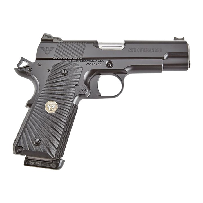 With it's full size grip frame and 4.25” slide and bushing barrel, the Wilson Combat CQB Commander will fill the need of Professionals seeking the traditional form and function of the classic 1911 design. As our first mid-size pistol model in this specific format, the CQB Commander is loaded with our most sought after custom enhancements desired in a hard use carry gun and will ensure that it becomes a permanent part of your carry rotation for years to come. The newest version of the traditional choice for concealment for over 50 years, our new CQB Commander will elevate the game in the 1911 world. Available in .45 ACP and 9mm, you can now custom order the perfect CQB Commander to suit your specific shooting needs. This package is just a starting point for your ultimate Wilson Combat Dream Gun. SPECIFICATIONS: Professional-Size Carbon Steel Round-Butt Frame High-Cut Checkered Frontstrap Contoured Magazine Well Concealment Bullet Proof® Beavertail Grip Safety and Hammer Bullet Proof® Ambidextrous Thumb Safety 3½# – 4½# Crisp Trigger Pull with Medium-Length Pad Bullet Proof® Magazine Release G10 Starburst Pattern, Beveled Bottom, Black Grips with Pewter Medallions Countersunk Slide Stop 4.25” Carbon Steel Slide Heavy Machine Chamfer on Bottom of Slide Battlesight with Fiber Optic Front Sight 4.25” Stainless Match-Grade Barrel and Bushing, Flush-Cut Reverse Crown Fluted Chamber 30 LPI Slide Top Serrations 40 LPI Serrated Rear of Slide Ball Cuts
