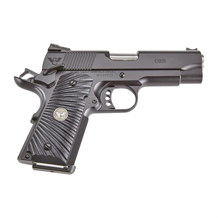 The CQB Compact Pistol has all the features of a full size CQB, but is reduced in size for carry purposes or for anyone who needs a smaller pistol. The slide on the CQB Compact is an inch shorter than a standard CQB and the grip is ½” shorter, yielding an ideal carry-size pistol - easier to conceal with less weight than a full size CQB. Like all Wilson Combat® firearms, we custom build the CQB Compact to meet your exact specifications - every part is hand-fit for reliability, performance and accuracy. Whether your anticipated use is for home defense or daily carry, why not experience the confidence that you will have with a Wilson Combat® CQB Compact On Your Side®? SPECIFICATIONS: Compact Carbon Steel Frame High-Cut Checkered Frontstrap High-Ride Bullet Proof® Beavertail Grip Safety Bullet Proof® Ambidextrous Thumb Safety 3 ½# - 4 ½# Crisp Trigger Pull Contoured Magazine Well G10 Starburst Grips 4" Carbon Steel Slide Battlesight with Fiber Optic Front Sight 4" Stainless Match Grade Cone Barrel, Hand Fit 30 LPI High Cut Checkered Frontstrap