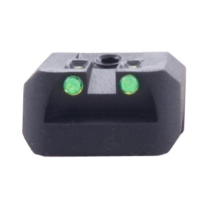 - Mache dich nach der Installation mit dem Sichtbild vertraut. Der grüne fiber optic Einsatz sollte einen hellen Kontrast zu dunklen Hintergründen bieten.