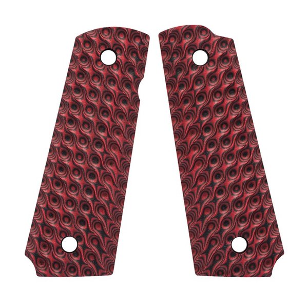 What monsters lurk beneath the waves? VZ Hydra 1911 grips are here to give you a monstrous grip on your gun for when the multi-headed beasts emerge from the darkness. The deep, undulating texture provides aggressive purchase without being overly sharp. The depth and size of the cuts are also great for showing off the patterns that appear in the layers of the G-10 material, especially in the Burl colors. Great for target practice, competition shooting, and even safe queens. Designed to fit all of the most popular full-size (Government or Commander) 1911 models from Colt®, Springfield Armory®, Kimber®, Les Baer®, Dan Wesson Firearms®, and many more. Cut for ambidxtrous safeties Frame: Full Size 1911 Weight: 2.24oz - 63.6g (approximate) Material: G-10 Aggressiveness: 4 out of 5