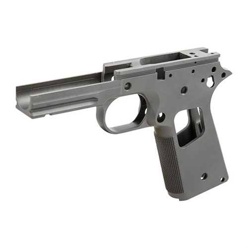Build an outstanding, custom 1911 using one of these top-quality, single-stack receivers as the foundation. Models and features available for any custom project needs. Precision cast from carbon or stainless steel, and CNC machined to final dimensions. Heat treated to Rc 22-24 for optimum performance and durability. Oversize frame rails allow the gunsmith to achieve an exceptionally tight slide-to-frame fit for more consistent accuracy. Select models available with smooth front strap or with crisp CNC machine-cut checkering. Recon model has the strength and compactness that combat and action shooters require, with an integral accessory rail that accepts laser sights and tactical lights.