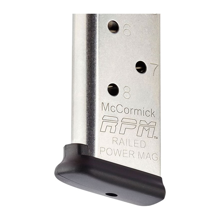 CMC Products Railed Power Mags, or RPM, is a 1911 magazine featuring dual wall feed lips making it the strongest CMC mag ever. No more jams due to thin, warped and bent 1911 feed lips, the RPM mags feature dual wall feed rails at least 2X the strength of standard feed lips. Built with a heavy duty corrosion resistant stainless steel body, the RPM also has an alloy frame safe follower, and numbered witness holes for a visual round count. Fits 1911 Government full size handguns 8 Round capacity 18 Coils of High Tensile Rocket Wire Spring Removable base pad for easy cleaning The RPM design is the result of a relentless pursuit of excellence, maximizing reliability and durability under all conditions.