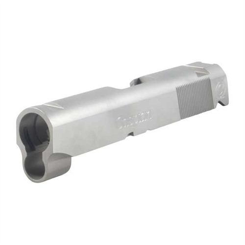 SPECS: 4340 carbon steel, in-the-white, or 416 stainless steel, natural finish. Government model accepts 5" barrel. Commander accepts 4.25" barrel. Officers model accepts 3.5" barrel. All Caspian slides require the use of a 9mm/.38 Super firing pin.