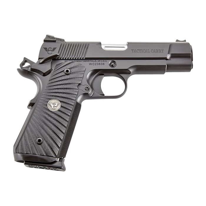 The Tactical Carry Commander was designed by Bill Wilson as a next-generation custom pistol and is an ideal choice as an everyday carry piece. The full-size steel frame and 4.25" Commander upper fitted with our Bullet Proof ® round butt one-piece magwell is a practical carry choice for shooters seeking a full-size grip. The Tactical Carry Commander also comes complete with many of our most popular performance and cosmetic options such as carry cuts, ball end mill slide cuts, serrated top and rear of slide, and countersunk slide stop post. The reduced-profile concealment grip safety and hammer in conjunction with the round-butt magwell guarantees that the Tactical Carry Commander will be a Bullet Proof® performer for you on the range or on the street. SPECIFICATIONS Full-Size Carbon Steel Frame High-Cut Checkered Frontstrap Bullet Proof® Round Butt Magazine Well Concealment Bullet Proof® Beavertail Grip Safety and Hammer Tactical Bullet Proof® Thumb Safety 3 ½# – 4 ½ Crisp Trigger Pull with Medium-Length Pad Bullet Proof® Magazine Release G10 Starburst Grips Torx Head Grip Screws Countersunk Slide Stop 4.25" Carbon Steel Slide Heavy Machine Chamfer on Bottom of Slide Battlesight with Fiber Optic Front Sight 4.25" Stainless Match-Grade Bushing Barrel, Flush-Cut Reverse Crown Fluted Chamber Fluted Barrel 30 LPI Slide Top Serrations 40 LPI Serrated Rear of Slide Carry Cuts/Ball Endmill Cuts