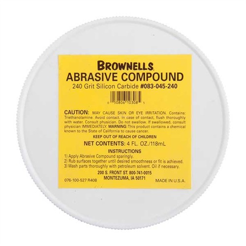 Herzlichen Glückwunsch zu Ihrem Kauf des BROWNELLS 240 Grit Silicon Carbide Abrasive Compound. Dieses Produkt ist speziell für das passgenaue Anpassen von Stahlteilen konzipiert. Um sicherzustellen, dass Sie das Produkt sicher und effektiv verwenden, beachten Sie bitte die folgenden Sicherheitshinweise.