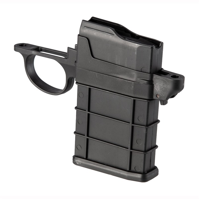 Die Installation des Ammo Boost Detachable Magazine Drop-In Kits ist schnell und einfach. Entferne einfach die originale Bodenplatte und installiere die Teile von Legacy. (Bewahre das Originalteil auf, falls du das Gewehr jemals in seine ursprüngliche Konfiguration zurückversetzen möchtest.) Das Kit ist sowohl in 5-Rd als auch in 10-Rd Kapazitäten für 700 BDL Gewehre erhältlich, die in einer Vielzahl beliebter Patronen geladen werden.