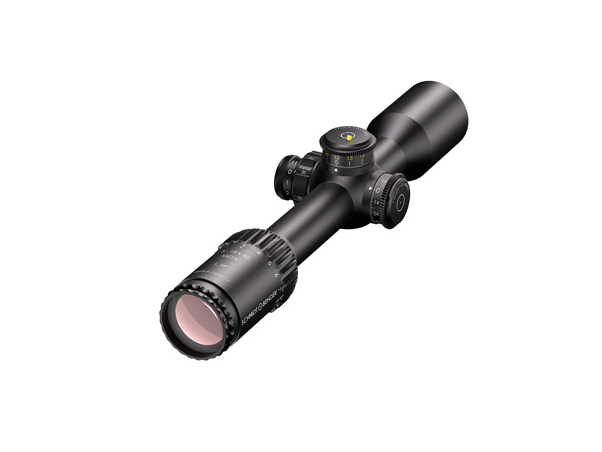Das 3-18x42 META (1. BE) von SCHMIDT U. BENDER setzt neue Maßstäbe in der Langstreckenleistung. Mit modernster Optik, präziser Technik und einem mutigen neuen Design ist dieses Zielfernrohr speziell für Jäger und Sportschützen entwickelt worden.