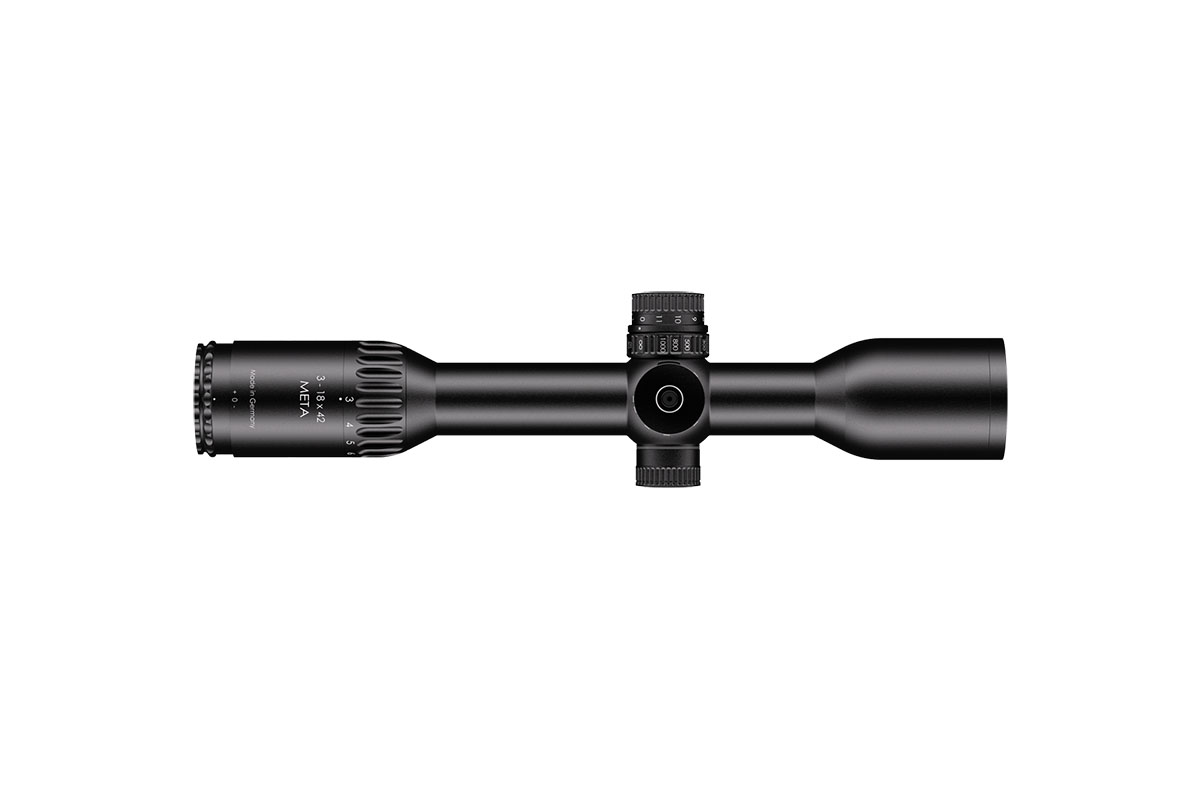 4060537069167 The 3-18x42 Meta combines exceptional optical clarity with powerful performance, delivering a premium shooting experience for both hunters and precision marksmen. Its wide field of view, paired with the LP7 reticle featuring an illuminated red dot, provides superior situational awareness and lightning-fast target acquisition. Unmatched precision is achieved through patented Zero Deviation Technology, a parallax adjustment starting from 20 m, and a generous internal adjustment range, ensuring consistent accuracy even at long distances. For enhanced mounting flexibility, the 3-18x42 Meta features the innovative “LPI” system – an illumination control integrated into the parallax adjustment turret. This smart design improves ergonomics and handling, offering smooth operation for both right- and left-handed shooters. The slim, streamlined construction of the scope makes it perfectly compatible with clip-on devices, while the reinforced ocular ring allows secure attachment of dust covers or add-on optics. With its blend of cutting-edge technology, robust build quality, and refined usability, the 3-18x42 Meta stands as a true symbol of precision engineering — designed to deliver reliability, adaptability, and clarity in every shooting scenario.