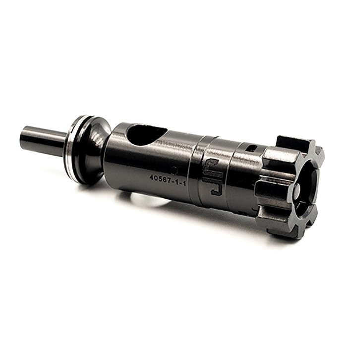 Der verwendete SAE 9310 Stahl hat einen zähen, duktilen inneren Kern, der hochgradig resistent gegen Spannungsrisse ist, sowie eine harte Außenschicht, die gegen Galling und Abnutzung beständig ist. So wird eine Lebensdauer von bis zu 60.000 Schuss gewährleistet. Dieser Stahl wird auch in den Getrieben von Formel 1-Rennwagen verwendet, was ihn ideal für Anwendungen mit hohen Stößen und Temperaturen wie bei dauerhaftem Vollautomatikfeuer macht.