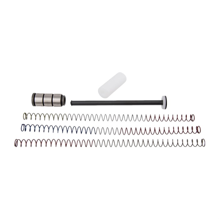 Passt auf Buffer-Rohre für sowohl M4-Stil zusammenklappbare Schulterstützen als auch, mit dem enthaltenen Spacer, auf die längeren Rohre für feste Gewehrschäfte. Die Auxiliary Spring Rate Kits für die JP Silent Captured Spring ermöglichen eine individuelle Anpassung des Geräts an ein bestimmtes Gewehr. Während die Standardfeder die beste Leistung für die größte Bandbreite an Konfigurationen bietet, kann eine einfache Demontage und Wiederzusammenbau der JPSCS mit einer leicht anderen Federhärte wirklich optimierte Leistung erzielen, insbesondere bei Gewehren ohne einstellbaren Gasblock.