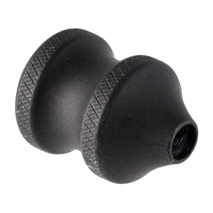 This bolt knob was designed by Area 419 to be the best all-around bolt knob for competition and general use. Its main feature is the finger groove which allows you to manipulate the bolt with just your pointer finger without searching for the ideal position each time. Made in the USA from 6061-T6 aluminum and anodized flat black. Defiance and Remington bolt knobs are threaded 5/16″-24. Remington knobs are 1-5/8″ long to accommodate shorter bolt handles Bergara bolt knobs are threaded M6x1 Mausingfield bolt knobs are internally threaded 10-32. Will only work on Mausingfield and Nucleus Bolts. Your finger automatically catches in the groove to assure the fastest, smoothest bolt manipulation. There are two knurled surfaces located on either side of the groove to give a sure grip.