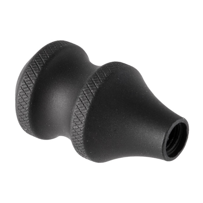 This bolt knob was designed by Area 419 to be the best all-around bolt knob for competition and general use. Its main feature is the finger groove which allows you to manipulate the bolt with just your pointer finger without searching for the ideal position each time. Made in the USA from 6061-T6 aluminum and anodized flat black. Defiance and Remington bolt knobs are threaded 5/16″-24. Remington knobs are 1-5/8″ long to accommodate shorter bolt handles Bergara bolt knobs are threaded M6x1 Mausingfield bolt knobs are internally threaded 10-32. Will only work on Mausingfield and Nucleus Bolts. Your finger automatically catches in the groove to assure the fastest, smoothest bolt manipulation. There are two knurled surfaces located on either side of the groove to give a sure grip.