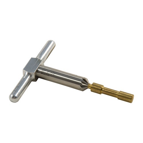 Der 45° MUZZLE/CYLINDER CHAMFERING CUTTER & BRASS PILOT ist das ideale Werkzeug, um scharfe Kanten an Gewehr- und Handfeuerwaffen-Mündungen zu brechen. Mit diesem Cutter kannst du die Zylinderkammern von Revolvern schnell und effizient entgraten, was das Nachladen erheblich beschleunigt.