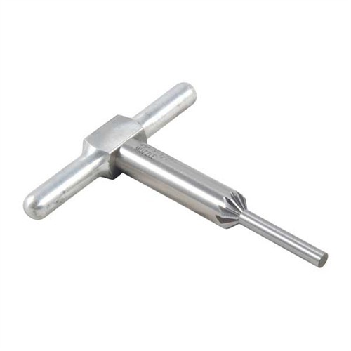 050806016651 Der 45° Entgrat Cutter bricht die Kanten der Züge für einen sauberen Geschossausgang oder entgratet die Kammeröffnungen des Revolverzylinders für schnelle Nachladevorgänge. Enthält den Cutter, einen Griff und einen Pilot, alles in einer Polypropylen-Box. Der austauschbare Pilot sorgt dafür, dass der Cutter richtig ausgerichtet bleibt. Kaufe zusätzliche Piloten, um einen Cutter für viele verschiedene Kaliber zu verwenden. Piloten für andere Kaliber sind separat erhältlich. Der 45° Cutter, der in Sets geliefert wird, die mit einem * gekennzeichnet sind, hat einen Durchmesser von 5/8", um die größeren Mündungen von Läufen und Zylindern in diesen Kalibern korrekt zu entgraten. Alle anderen Sets haben einen Durchmesser von ½", 45° Cutter.Nachbestellt, Lieferzeit ca. 4-12 Wochen aus dem Großlager.