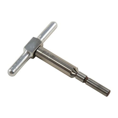 Der 45° Chamfering Cutter bricht die Kanten der Züge für einen sauberen Geschossausgang oder fasst die Kammeröffnungen des Revolverzylinders an, um schnelle Nachladevorgänge zu ermöglichen. Das Set enthält den Cutter, einen Griff und einen Pilot, alles verpackt in einer Polypropylen-Box. Der austauschbare Pilot sorgt dafür, dass der Cutter richtig ausgerichtet bleibt. Kaufe zusätzliche Piloten, um einen Cutter für viele verschiedene Kaliber zu verwenden. Piloten für andere Kaliber sind separat erhältlich.