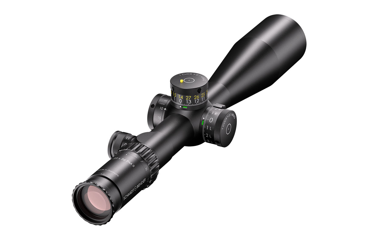 4060537033434 The 5‑25×56 PM II from Schmidt and Bender stands at the pinnacle of variable‑magnification tactical optics, engineered for long‑range precision, outstanding clarity and professional‑level reliability. With a wide 5–25× zoom range and a substantial 56 mm objective lens, it delivers exceptional light‑gathering capability, enabling crisp, bright imagery even at extended distances. Built upon a rugged 34 mm main tube, the scope accommodates large internal adjustment ranges and is designed for demanding use. It features a reticle in the first focal plane (FFP) so that scale and hold‑offs remain accurate at any magnification. The field of view spans approximately 5.3–1.5 m at 100 m, while the exit pupil ranges around 11.0–2.3 mm, and the eye relief remains generous at around 90 mm. The parallax adjustment typically extends from 10 m to infinity, enabling accurate focus from very close ranges through to extreme distances. The turret system is engineered for precision: click values as fine as 0.1 mrad (≈1 cm at 100 m) are available, and a double‑turn elevation turret combined with single‑turn windage allows vast usable correction ranges for wind and elevation. Optical transmission exceeds 90 %, and the construction is nitrogen‑filled, fog‑ and waterproof, ensuring full reliability in all climatic conditions. Key Specifications: Magnification: 5–25× Objective Lens Diameter: 56 mm Main Tube Diameter: 34 mm Field of View: approx. 5.3–1.5 m @100 m Exit Pupil: approx. 11.0–2.3 mm Eye Relief: approx. 90 mm Parallax Adjustment: from ~10 m to infinity Click Value: approx. 0.1 mrad (≈1 cm at 100 m) Optical Transmission: > 90 % Crafted in Germany to the highest standards, the 5‑25×56 PM II is the go‑to choice for military, law‑enforcement and competition shooters who demand absolute clarity, mechanical integrity and extreme flexibility in one optic.