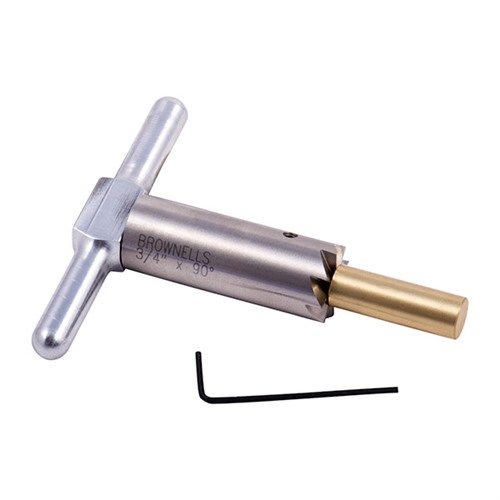 Der 90° MUZZLE FACING CUTTER & BRASS PILOT von BROWNELLS ist das perfekte Werkzeug, um Mündungen von Gewehren und Handfeuerwaffen präzise zu bearbeiten. Egal, ob du die Mündung nach dem Kürzen begradigen oder Dellen und Beschädigungen reparieren möchtest, dieser Cutter ist ideal dafür.