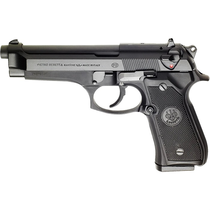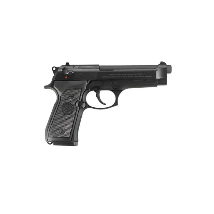 A product of decades of continuous evolution, the Beretta 92FS remains the standard-issue sidearm of the U.S. military and of armed forces and police agencies all over the world, as well as individuals wanting the best for sport or self-protection. It is a double/single-action semi-auto pistol with an open-slide, short-recoil delayed locking-block system that delivers exceptional accuracy and reliability. The open slide practically eliminates stove-piping to promote extremely reliable cycling and feeding. The 92FS consistently bests the U.S. military requirement of a 10-shot group of 3 or less at 50 meters (55 yards). This type of match-grade accuracy requires absolutely precise tolerances to keep performance consistent shot after shot. The 92FS also offers many of the most desireable tactical features that make it just as safe, easy to use, and dependable for home or personal defense as it is for military service. The reversible magazine release lets you use either hand for mag changes, while the ambidextrous safety-decocker makes it flexible for right- or left-handed persons or for shooters trying out different gripping or shooting styles. After shooting, the tool-free disassembly latch makes it a snap to take the pistol apart for cleaning. Available with a black Bruniton finish that closely resembles traditional bluing but is far more resistant to corrosion, scratches, and wear. Or for even more resistance to the elements, there's a high-grade Inox stainless steel option.