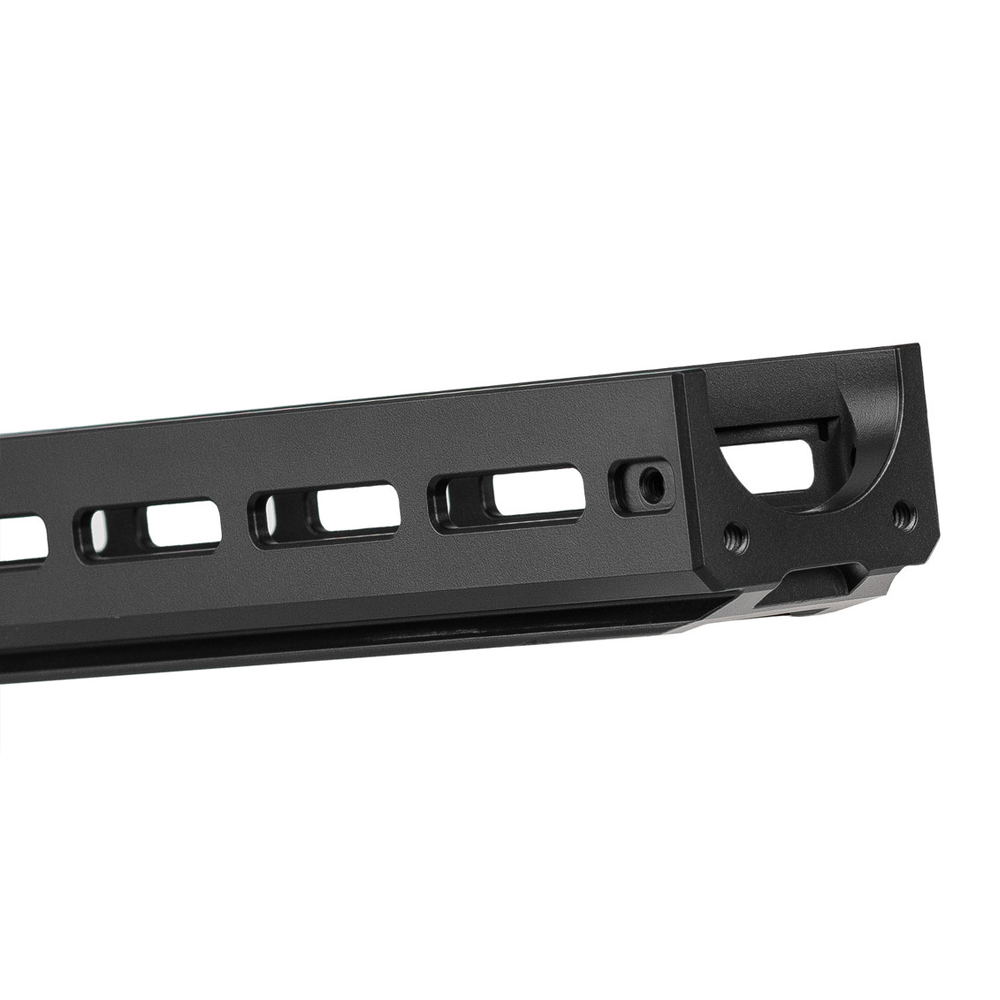- Kompatibel mit einem kompakten 15” Forend, das bequem Läufe ab 17” aufnehmen kann.