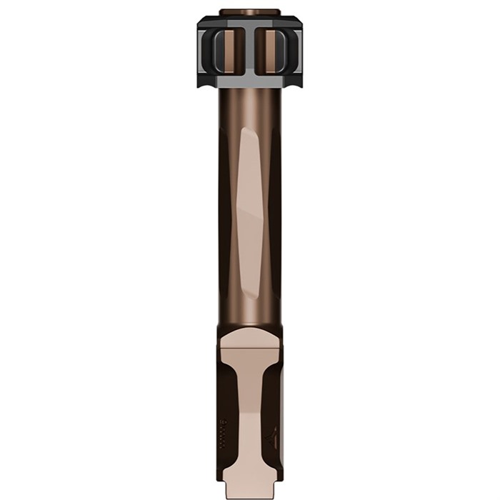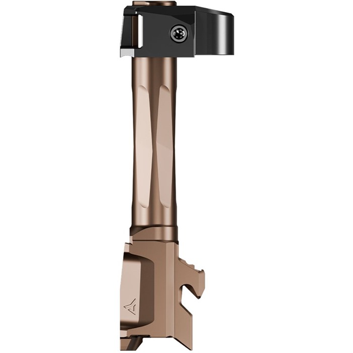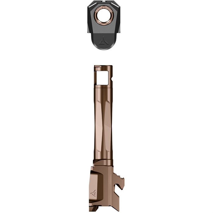 AFTERBURNER + RAMJET FOR GLOCK 43X The Radian® AFTERBURNER™ + RAMJET™ combo provide unprecedented recoil reduction and match grade accuracy in a concealed carry package. The threadless barrel design allows for effortless install/removal for cleaning, while LEGAL FOR SALE IN ALL 50 STATES*. The AFTERBURNER™ compensator is machined from hardened stainless steel and the RAMJET™ barrel from hardened 416R SS; both are enhanced with a Radianite™ coating. This combination achieves low friction, high hardness, and high corrosion resistance, making overall durability and erosion from muzzle blast a non-issue. Angled front faces on the AFTERBURNER aid in holstering. The INTRA-LOK® mounting system uses the taper lock principle; a tapered locking screw interfaces with an angled V-groove on the underside of the barrel. This perfectly times the compensator as it locks down onto the upper barrel profile on the muzzle end of the barrel. INTRA-LOK® allows the user to simply slide the compensator over the barrel, insert and tighten the locking screw, making for a simple and repeatable installation process. This system allows the user to easily remove the barrel from the slide for cleaning. DISCLAIMER: “GLOCK” is a federally registered trademark of GLOCK, Inc. and is one of many trademarks owned by GLOCK, Inc. or GLOCK Ges.m.b.H. Neither Brownells nor this site are affiliated in any manner with, or otherwise endorsed by, GLOCK, Inc. or GLOCK Ges.m.b.H. The use of “GLOCK” on this page is merely to advertise the sale of GLOCK pistols, parts, or components. For genuine GLOCK, Inc. and GLOCK Ges.m.b.H. products and parts visit www.glock.com.