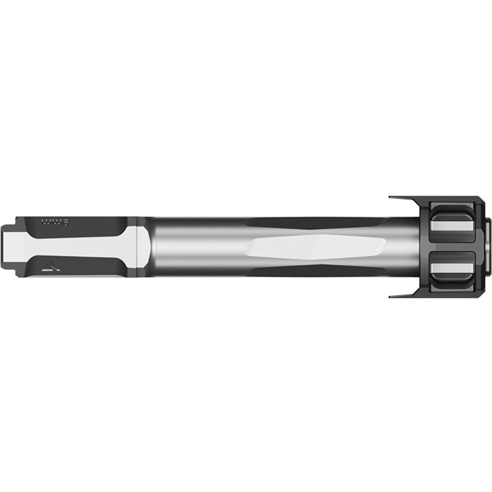 Der AFTERBURNER™ Kompensator ist aus gehärtetem Edelstahl gefertigt, während der RAMJET™ Lauf aus gehärtetem 416R SS besteht; beide sind mit einer Radianite Black Beschichtung versehen. Diese Kombination erreicht eine niedrige Reibung, hohe Härte und hohe Korrosionsbeständigkeit, was die Gesamtdauerhaftigkeit und Erosion durch Mündungsfeuer zu einem Non-Problem macht.