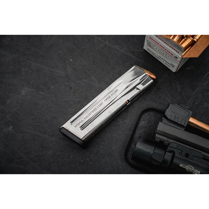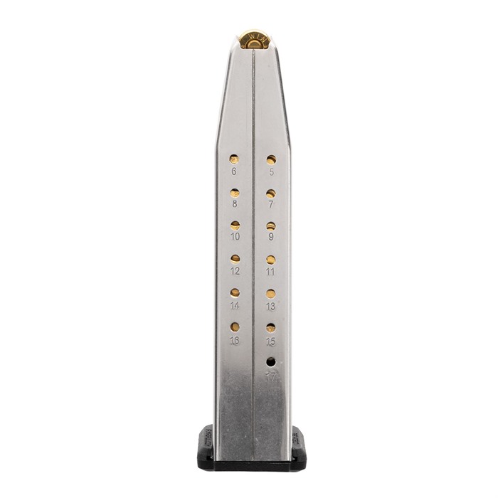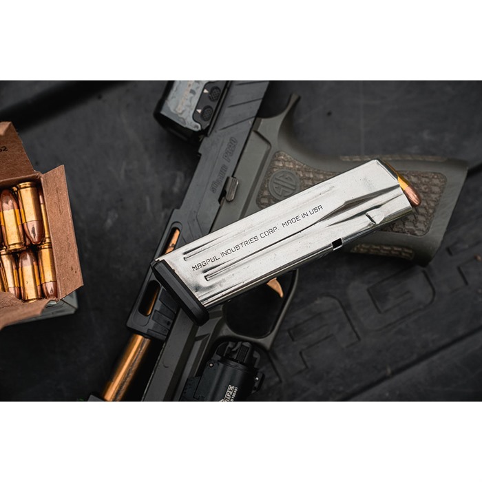 The AMAG 17 SG9 is a 17-round SIG 9mm Handgun Magazine featuring a stainless-steel body with polymer sub-components. Magpul SIG magazines come with many of their standard proven features, including a high-visibility, controlled-tilt follower, stainless-steel spring, flared floorplate that’s easily removable for cleaning and routine maintenance, paint-pen dot matrix for magazine marking, and capacity-indicator windows which begin at five (5) rounds, and continue along the spine of the magazine in one (1)-round increments. Like all Magpul’s polymer products, the AMAG 17 SG9 is designed, engineered, and manufactured only by Magpul for absolute reliability every time you use them. Corrosion-resistant, stainless-steel magazine body High-visibility, controlled-tilt follower Stainless-steel spring for longevity and durability Flared, easily removeable floorplate for easy maintenance Capacity indicators starting at 5 rounds, continue in 1-round intervals Paint-pen dot matrix Compatible with all P320 / M17 frame sizes COMPATIBILITY The AMAG 17 SG9 is compatible with full-size, compact, and sub-compact variants of the P320/ M17/ M18 platform.