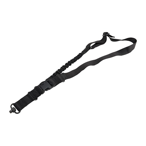 SPECS: Nylon webbing, elastic bungee cord, black. Hardware - Polymer quick-release and adjustment buckles, steel snap-hooks/D-rings, black. Adjusts from 29" (73.6cm) to 60" (152cm) long. 1¼" (3.2cm) wide.