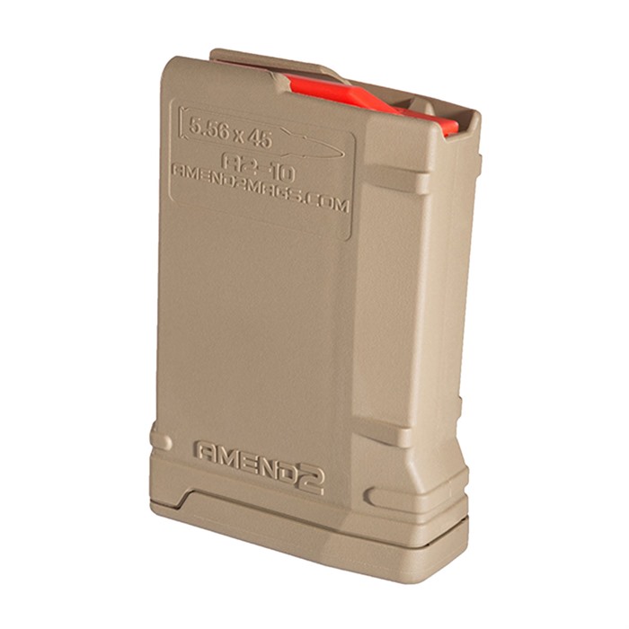 The Amend2® 10 round magazine is a sturdy, reliable 5.56x45 NATO (.223 Remington) AR15/M4/M16 magazine made of advance polymer material. It is a light, durable and excellent alternative to the standard M4/M16 USGI aluminum magazine. The 10 round body profile is ideal for hunting, bench shooting or the various states where capacities are limited by law. The magazine comes in a variety of colors including Black, Flat Dark Earth, OD Green and Gray. FEATURES: Sturdy Impact resistance polymer with textured grip Anti-tilt super follower Heavy duty, non-memory, and non-corrosive stainless steel spring Made in the U.S.A. Material able to cerakote