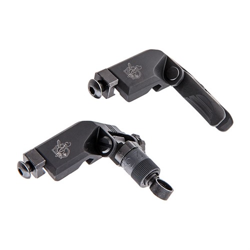 The KAC 45 Degree 200-600 Meter Offset Folding Clamp Mount Sight Kit allows shooters easy access to a set of backup iron sights for close range target engagements without the need to remove their primary optic. The sights attach securely to the 12 o’clock rail position and once deployed, a quick roll of the rifle is all that’s needed to acquire a useable sight picture. When not required the sights fold neatly to the right of the rifle’s top rail. The Offset Sight Kit includes an elevation adjustable 200-600 Meter Micro Rear Sight and finger adjustable Micro Front Sight assembly. The Clamp Mount design on this sight set allows for a robust attachment, for those looking for a rugged mounting solution. For right hand use only.