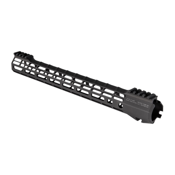 The ATLAS S-ONE is the newest addition to the Aero Precision Handguard lineup. Machined from 6061-T6 Aluminum, the S-ONE line of handguards are designed with size and weight in mind, providing the perfect handguard for your lightweight build. Aero's proprietary ATLAS attachment system is a durable and dependable mounting platform, maintaining a slim profile while still providing the strength and stability customers have grown to love from Aero Precision handguards. Actual Handguard Lengths: 7.3", 9.3", 10.3", 12.7", 15" -- Aero Precision rail lengths measure from end to end. This is the point of contact at the receiver to the end of the last picatinny slot at the muzzle. Available in M-LOK profiles with 7.3", 9.3", 10.3", 12.7" and 14.94 (Actual Length 15") options. ATLAS The new Aero Taper Lock Attachment System (ATLAS) is both functional and aesthetically pleasing. It features 2 mirrored tapered locking nuts that provide evenly distributed clamping pressure across a custom engineered barrel nut with use of a turnbuckle screw. A ratcheting detent further secures the design while providing positive registration during installation. By design, the even pressure of the ATLAS system avoids distortion of the handguard often seen with current applications during installation. All hardware mounting parts are included with the purchase of an ATLAS Handguard. LIGHTWEIGHT BY DESIGN M-LOK Handguard Weights: 7.3" - 4.86 oz / 9.3" - 5.47 oz / 10.3" - 6.0 oz / 12.7" - 7.00 oz / 15" - 7.95 oz Mounting Hardware Weight: 1.9 oz (same across all S-ONE Handguard options) FEATURES: Front and rear picatinny rail Eliminated center of top rail for weight reduction Indexing grooves in 12:00 position for positive grip control Quick disconnect sling socket at the 3, 6 and 9 o'clock positions Compatible with low profile gas blocks 1.3" Inside diameter 1.5" Outside diameter Compatible with mil-spec AR15 upper receivers and barrels NOT Compatible with M4E1 Enhanced Upper Receivers ATLAS Handguards are designed to match seamlessly with Aero's M4E1 Threaded Upper Receivers. Additionally, they are compatible with any Mil-Spec AR-15 upper receivers as well. However, they may not be compatible with billet upper receivers due to indexing tabs. Save when you buy them as a combo. Please note: The ATLAS Handguards are NOT compatible with Aero's M4E1 Enhanced Upper Receiver.