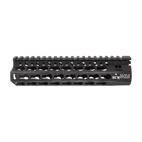Bravo Company’s machined aluminum BCM KMR Alpha Handguard free-floats the barrel for better accuracy potential while it provides plenty of KeyMod™ slots for add-on rail segments and accessories. Built-in Picatinny top rail is supplemented by KeyMod™ slots at - and between - the 3, 6 and 9 o'clock positions. Fits standard AR-15 upper receiver Lightweight yet robust aluminum construction, reinforced with non-reflective hardcoat anodized finish 1.5" O.D., measured flat-to-flat, 1.3" I.D. Proprietary barrel nut and mounting hardware INCLUDED Comes with one KeyMod rail segment - more rail segments sold separately The Bravo Company BCM KMR Alpha Handguard flares slightly at the front into a special, flat-bottomed shape that's comfortable to hold, and provides stable support when shooting off barricade or obstacle. Brownells Gun Tech™ Note: The KeyMod™ accessory-mounting system was developed by Eric Kincel, who is now the director of Bravo Company’s product development team. It is designed to work in parallel with the existing MIL-STD 1913 Picatinny rail systems, often providing greater versatility, modularity, and ease of configuring accessories than Picatinny rails alone.