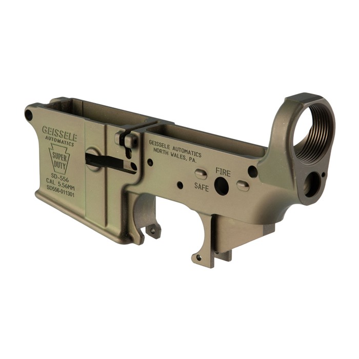 The Geissele Super Duty Stripped Lower, made from a 7075 T6 aluminum forging, is precision machined and quality assured to the mil-spec standard at the Geissele facility. The Super Duty stripped lower is the heart of your next build, ready to accept your favorite components to make your next AR15-pattern rifle truly your own. Blem receivers have cosmetic or machining imperfections that are 100% functional. Imperfections includes dings, scratches, machine marks, or mismatched color tones. MATERIAL: 7075-T6 COLOR: Black or DDC FINISH: Type-3 Hardcoat Anodize COMPATIBILITY: Mil-Spec DESIGNATION: CAL 5.56MM INDICATORS: Safe/Fire