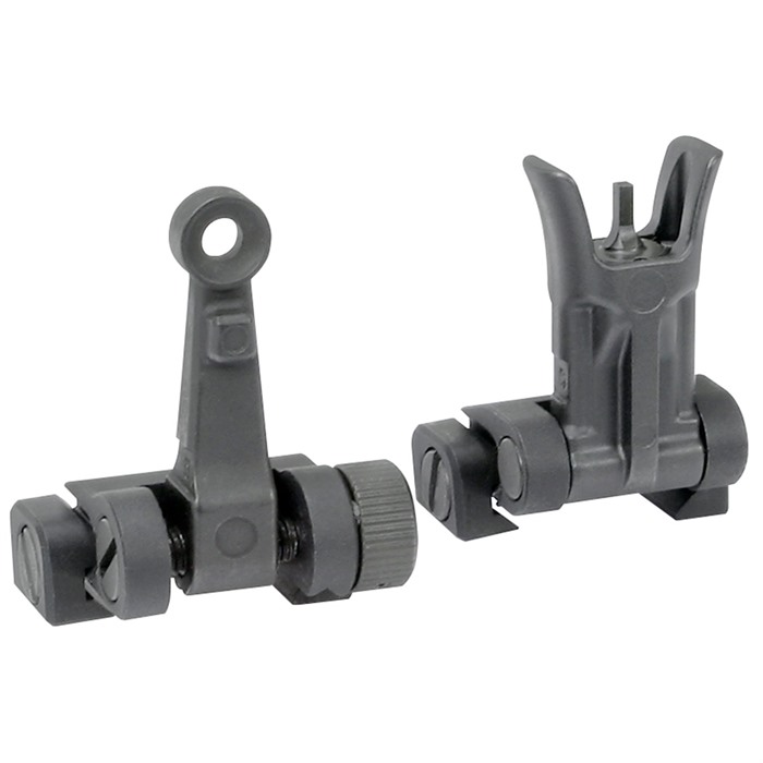 Die AR-15 Combat Rifle Folding Sight Set von MIDWEST INDUSTRIES bietet AR-Besitzern eine neue Visieroption. Dieses Set besteht aus einer Vorder- und einer Hintervisierung, die alle mil-spec Anforderungen an die Höhe erfüllt und aus einer Kombination von hochwertigem Stahl und 6061 Aluminium gefertigt ist. Diese gemischte Konstruktion sorgt dafür, dass die Visierungen dort stark sind, wo es nötig ist, während das unnötige Gewicht von reinem Stahl vermieden wird.