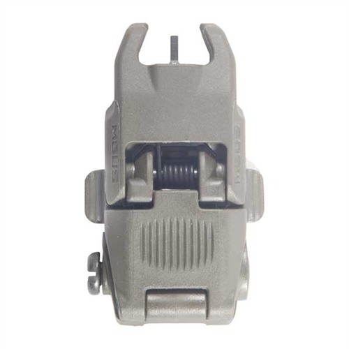 Low-profile, flattop-mounted, polymer sights deploy instantly at the touch of a finger to provide backup sighting if a primary optic fails. Streamlined contours mean there’s nothing to snag on brush, sling, or other gear when folded. Spring-loaded ambidextrous release mechanism lets you hit the grooved tab on either side of the sight to deploy, and lock it in place. Hitting the same tabs retract the sight when you're done. Uses less than 1" of MIL-STD 1913 Picatinny receiver rail space and locks securely in place with the included steel crossbolt. Provides the same height over bore as standard A2 iron sights. Front sight must be mounted on a railed forend on the same plane as the receiver rail to witness correctly with rear sight. Not compatible with railed gas blocks or the MOE handguard.
