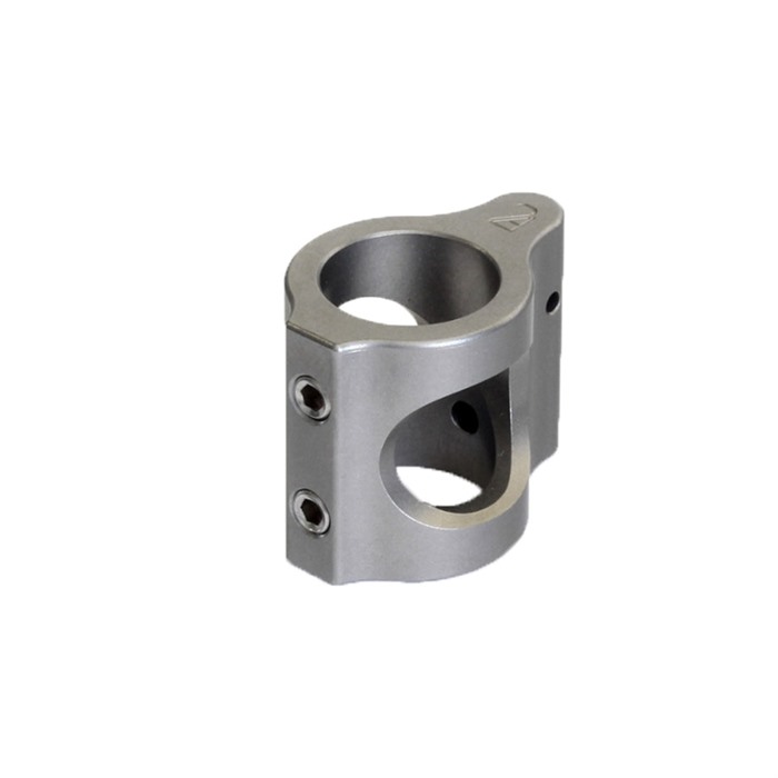 - Sichere den Gasblock mit den zwei EdelstahlSetSchrauben. Ziehe sie fest, aber überdrehe sie nicht, um Beschädigungen am Lauf zu vermeiden.