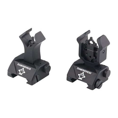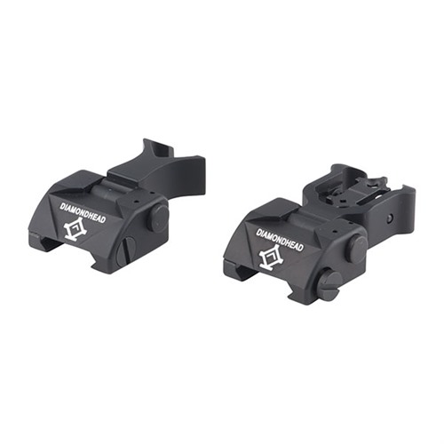 Das Flip-up Reserve Sight von DIAMONDHEAD USA verwendet eine einzigartige Diamantform, die spezifische Referenzpunkte bietet, um dein Auge sofort auf das Ziel im Visier zu zentrieren.