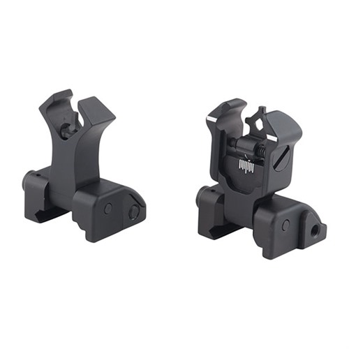 857880003115 Die umklappbaren Reserveschüsse verwenden eine einzigartige Diamantform, die spezifische Referenzpunkte bietet, um deinem Auge zu helfen, das Ziel sofort im Visier zu zentrieren. Sie werden sicher auf der Picatinny-Schiene befestigt, mit einem Verriegelungssystem, das sicherstellt, dass die Visierungen sicher oben bleiben und im Nullpunkt bleiben. Wenn sie nicht verwendet werden, klappen sich die Visierungen mit einem Knopfdruck nach unten. Der Vordersicht hat abgeschrägte Ohren, die den A2-Typ Post schützen und als visuelle Referenzpunkte dienen. Der Rücksicht bietet duale, gleichplane kurze und lange Öffnungen, horizontale weiße Referenzmarkierungen und ½ MOA Windabweichungen. Klappt und entfaltet sich mit aktivem Aperture.Aus dem Programm genommen