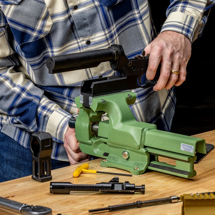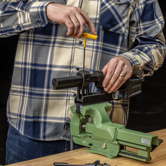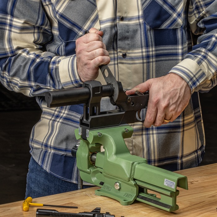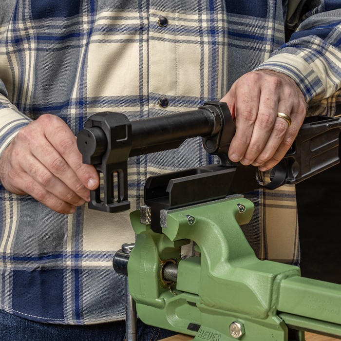 Hier bei Brownells wissen wir, wie schwierig es ist, den Castle Nut des unteren Empfängers festzuziehen, ohne dass sich der Buffer Tube während des Aufbaus oder der Wartung einer AR-15-Plattform dreht. Aus diesem Grund haben wir die AR-15 Lower Receiver Extension Vise Fixture entwickelt.