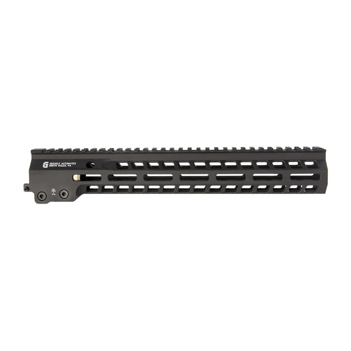 The Geissele MK14 Super Modular Rail tactical AR-15 handguard has a slim cross-section that makes it is ideal for shooters who use rail covers and/or a vertical grip - and who also employ the thumb-over-the-bore support hand grasp. Similar to their MK13 SMR, the Geissele MK14 delivers acres of real estate for mounting accessories, with M-LOK slots running the handguard’s full length at the 3, 6, and 9 o'clock positions. The MK14 Super Modular Rail also sports an uninterrupted Picatinny rail running the full length of the top. Geissele even thoughtfully includes sockets for QD pushbutton sling swivels at the 11 and 1 o’clock positions at the rear. Strong & lightweight machined 6061 T6 aluminum Barrel Nut Wrench no longer included with the handguards. Type III hardcoat anodized Available in basic Black or Geissele’s Desert Dirt Color (DDC) Proprietary free-float barrel nut included Geissele also engineered the MK14 Super Modular Rail handguard to free-float the barrel using their easy-to-install proprietary barrel nut. The nut is 2.25" long, so there’s plenty of surface area for secure, rigid, straight anchoring of the handguard in place. Please note that a gas block is no longer included with these handguards.