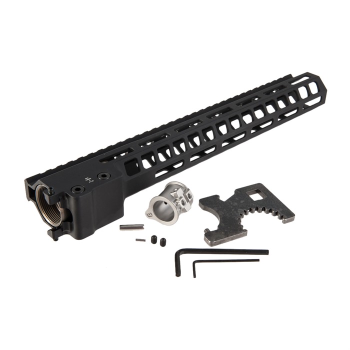 Der MK14 Super Modular Rail Handguard wurde so konzipiert, dass er den Lauf frei schwebend hält, dank des einfach zu installierenden, proprietären Barrel Nut. Diese ist 2,25 Zoll lang, was ausreichend Fläche für eine sichere und stabile Befestigung des Handguards bietet. Bitte beachte, dass ein Gasblock nicht mehr im Lieferumfang enthalten ist.