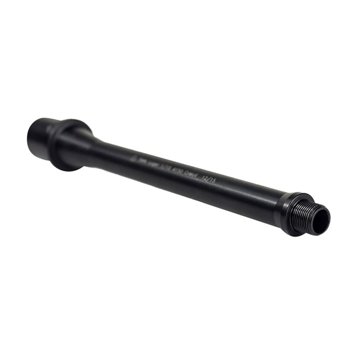 This 9mm chambered 4.5 inch Modern Series Barrel is machined from 4150 Chrome Moly Vanadium steel with a QPQ Corrosion Resistant Finish and 1/2-28 x .400 full profile threads. Designed to work with both Colt/RR and Glock style AR builds. Compatible with standard mil-spec uppers. There are also numerous dedicated 9mm upper options that work. Requires the use of a unique magwell conversion (Colt/Rock River style) with UZI mags or a dedicated 9mm lower with Glock mags. 9mm on an AR15 platform operates by blowback and does not need a gas block or gas tube. Threaded 1/2x28 or 1/2x36 to give you greater versatility when choosing a suppressor. Integrated feed ramp and barrel extension. Since the “barrel extension” is an integral part of the barrel, the length stated is the true overall length. For example, an 11” 9mm barrel has the same outer dimensions/length as a 10.5” 5.56 barrel. IMPORTANT: A standard 1/2x28 flash hider will not have enough clearance for a 9mm round to pass. Before installing a muzzle device, ensure a 9mm round will drop freely through the muzzle device bore. You may use this barrel with a lower receiver that is a Registered SBR, Machine Gun, or Pistol. Possession of this barrel along with a Non-NFA lower receiver is Prohibited, except when installed on a Pistol configuration firearm. Additional Info Material: 4150 Chrome Moly Vanadium Finish: QPQ Corrosion Resistant Gas System Length: Blowback Gas Block Journal: Blowback Gas System - No Gas Block Twist Rate: 1:10 inches Muzzle: 1/2x28 Threaded