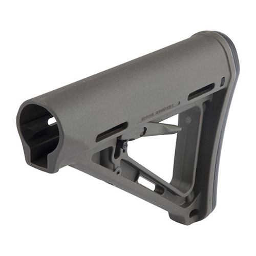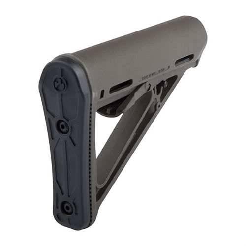 Magpul Original Equipment (MOE) carbine buttstock provides the quality, durability, and ergonomic benefits of Magpul’s CTR stock in a rugged, economical, drop-in package. Strong, A-frame design is lightweight and comfortable, yet provides operator with plenty of support. Comb contour is wider than standard issue M4 stock to help shooter maintain a solid, consistent cheekweld. Streamlined exterior and protected release lever won’t snag on clothing, gear, vehicle interior, or vegetation. Heavy duty, spring-loaded release lever allows fast length-of-pull adjustments and won’t dig into your hand. Impact- and heat-resistant, polymer construction includes molded-in reinforcements at stress points, plus two slots for web slings and a hole for a toe-mounted sling swivel or clip-on sling. Soft, synthetic rubber buttpad increases comfort and helps prevent slippage. Mil-Spec fits 1.14" O.D. buffer tubes on Colt-manufactured M4 and similar mil-spec tubes that accept both four- and six-position collapsible stocks.
