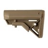 B5 SYSTEMS BRAVO COLLAPSIBLE MIL-SPEC STOCK FOR AR-15 Building upon the success of the B5 Systems Enhanced SOPMOD, B5 has taken the features end users demand; offering them in a lighter, more compact, and stronger buttstock. The Bravo stock maintains the SOPMOD cheek weld, one piece anti-rotation quick disconnect sling mount, non-slip cushioned buttpad, and improved sure grip stock latch. The Bravo omits the storage capability of the SOPMOD to provide a slimmer profile and angles the rear of the stock ensuring quick and consistent stock placement against the shoulder and cheek. Made of Mil-Spec materials and finishes. Currently employed by the U.S. military, this reinforced polymer stock fits M4-type receiver extensions and offers an improved cheekweld designed for increased comfort and consistency. Streamlined contours resist snagging on clothing, equipment, or vegetation to aid in safe and stealthy operation. Sure-Grip stock latch ensures convenient and intuitive length-of-pull adjustment, while the anti-slip rubber recoil pad secures the weapon to the operator’s shoulder. Features a black, stainless steel QD swivel mount and two molded 1¼" wide sling slots. FEATURES Ergonomic Cheek Weld Color-Matched Steel Hardware Fixed Sling Mounts and Steel Anti-Rotational QD Mounts Cushioned Non-slip Buttpad with Built in M4 Multi-Tasker® Tool Holder (tool sold separately) Sure Grip Stock Latch Made of MIL-SPEC Materials and Finishes Fits MIL-SPEC Carbine Receiver Extensions SPECS Weight: 9.3 oz Length: 7.2 in Width: 2 in Height: 4.9 Black and Tan models are TACOM approved and on the Additional Authorization List (AAL) for the M4/M4A1. Black NSN: 1005-01-706-2373 Flat Dark Earth NSN: 1005-01-706-2510