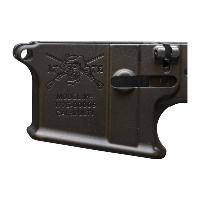 The Sons of Liberty Gun Works AR-15 lower receivers are built from mil-spec 7075-T6 forgings from the lead forge in the U.S. They contour is fully machined leaving no flash marks from the forging. SOLGW take extra care when machining their lower receivers resulting in tolerances that are tighter and fits that are better than other lower receivers. SOLGW uses mil-spec Matte black hard-coat anodized Mil 8625 Type 3 Class 2 finish. Available in an array of different designs including Angry Patriot, Soul Snatcher, Lone Star, Scalper, Rebellious Stripes, and Loyal 9.