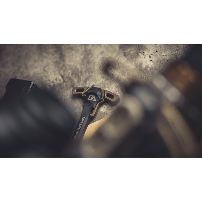 The Breek Arms WARHAMMER MICRO MOD2 ambi charging handle is a simple and affordable upgrade that will substantially increase the use of your AR-15. Easily grab on either side of the handle and you can quickly charge your rifle even with large gloves with the textured grooves that are cut into the latch handles. The smaller latches on the MICRO are for use when shooting with gear, slings, or barriers to avoid snagging. The total width of the latches measures 2.40", slightly wider than a standard charging handle width. The low profile design keeps it slim and sleek looking without sacrificing functionality. Made entirely out of 7075 aluminum for added strength and durability! The new MOD2 design features improvements for further reducing gas blowback in the shooter's face. The relief cuts on the top and bottom of the stem are designed to help direct extra gas out the side and away from your face. And for any gas that does manage to go straight back, we increased the height of the shelf to better cover the back of the upper. These modifications help improve the shooting experience, especially when shooting suppressed! FEATURES: Material: 7075-T6 aluminum Fits all mil spec AR15/M16 Rifles Finish: Type III hard-coat anodized Perfect replacement for any factory charging handle Latches are also 7075-T6 aluminum Reduced size ambidextrous release levers on both sides, 2.40" total width across the handles Set-Back Latches work great for large optics Allows for one handed manipulation Higher Rear Shelf and Relief Cuts to Divert Suppressor Gasses Weighs in just under 1 ounce! No gun smith required Made in America