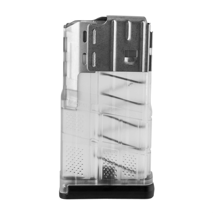 When they set out to develop a tough and reliable .308 polymer magazine on the market, Lancer took engineering inspiration from the L5AWM (5.56) and the SIG Sauer MPX, combining the best advances of both to bring the L7AWM 7.62X51mm magazine to life. The L7AWM is lightweight with steel feed lips that wrap completely around the magazine to maximize stiffness and reliability while preventing dimpling to the front of the magazine. A switchable drain lock in the floor plate comes standard on all L7s, allowing users to configure the magazine for either water-borne or extreme dust conditions. The L7AWM is designed to work in multiple weapon systems.
