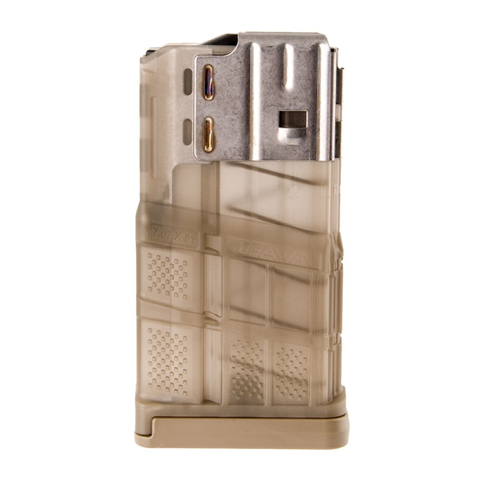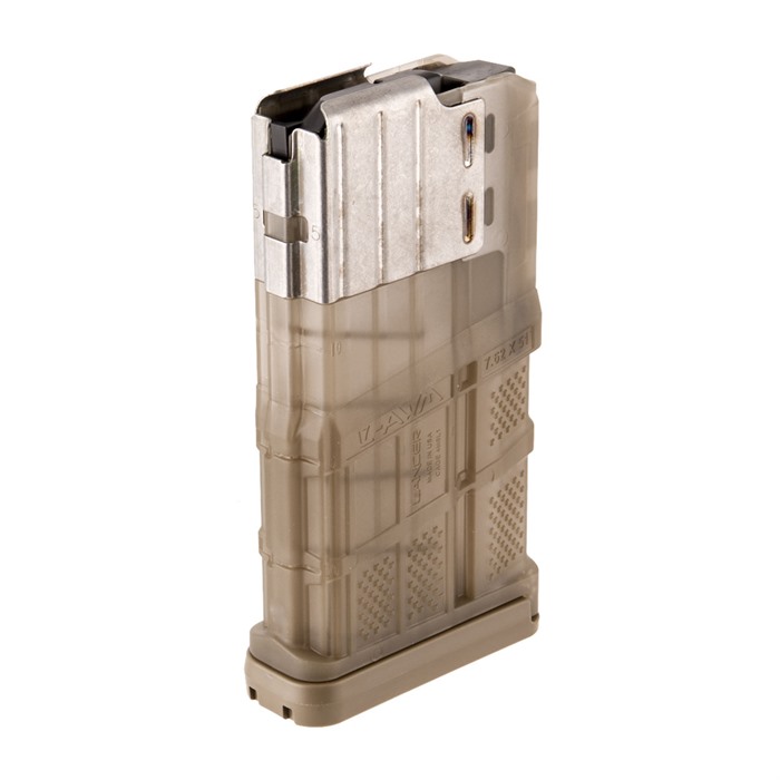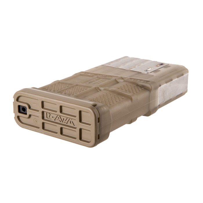 When they set out to develop a tough and reliable .308 polymer magazine on the market, Lancer took engineering inspiration from the L5AWM (5.56) and the SIG Sauer MPX, combining the best advances of both to bring the L7AWM 7.62X51mm magazine to life. The L7AWM is lightweight with steel feed lips that wrap completely around the magazine to maximize stiffness and reliability while preventing dimpling to the front of the magazine. A switchable drain lock in the floor plate comes standard on all L7s, allowing users to configure the magazine for either water-borne or extreme dust conditions. The L7AWM is designed to work in multiple weapon systems.