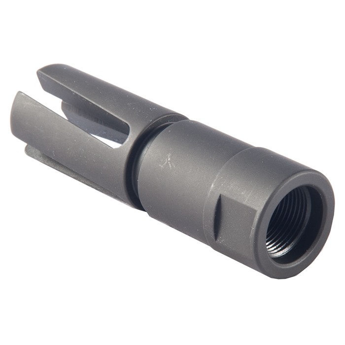 Das stromlinienförmige Gerät reduziert den Mündungsfeuer mit vier, 15° schrägen Rillen. Bietet Vortex-Technologie für Remington 700 Tactical, Savage und AR-Stil .308 Gewehre. Geriffelt, um einen Smith Enterprise Direct Connect Schalldämpfer zu akzeptieren. Kommt mit 5⁄8"-24 Gewindesteigung und .635" Gewindelänge, um auf Savage 110 FCP Repetiergewehre und AR-Stil .308 Gewehre mit der kürzeren Gewinde-Spezifikation zu passen, einschließlich DPMS und Noveske. Passt auch auf 6.8mm SPC Gewehre mit diesen Mündungsgewinde-Spezifikationen.